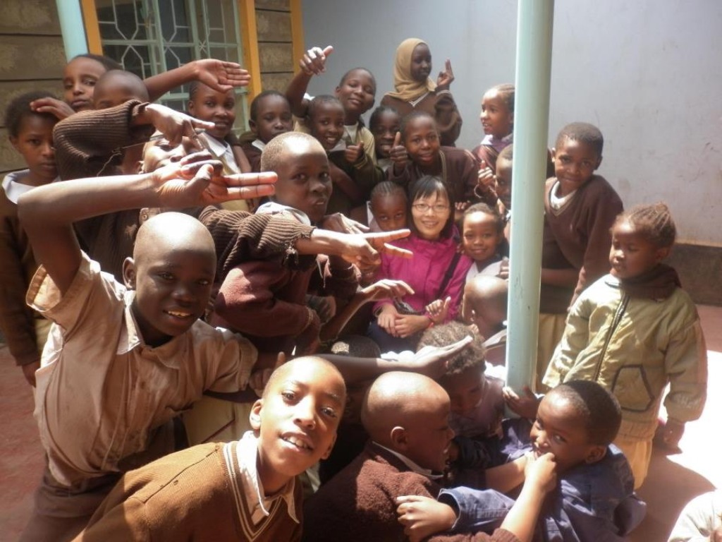 圖:2011年首次踏上非洲肯亞的張博涵宣教士與所服事的恩慈學校的孩子們