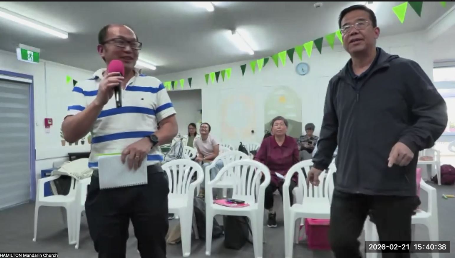 圖:漢美頓華語教會柯曙明弟兄(左)分享。懷相福音事工中心提供